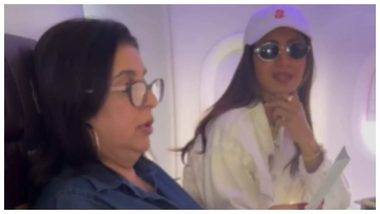 ఈరోజు ఫరా ఖాన్ ఒక ఫన్నీని పంచుకున్నారు వీడియో న Instagram ఆమె మరియు ఫిట్నెస్ ఔత్సాహికురాలు శిల్పాశెట్టి.వీడియోలో, క్యాబిన్ క్రూ సభ్యుడు ఫరాకు డ్రింక్ అందిస్తున్నప్పుడు ఇద్దరూ విమానంలో కూర్చున్నారు. ఆమె అంగీకరించబోతున్నందున, శిల్పా అంగీకరించని సంజ్ఞతో తిరస్కరించమని సంకేతాలు ఇచ్చింది.