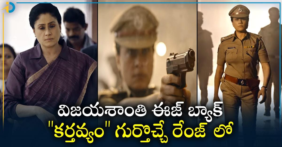 విజయశాంతి.. క్యారెక్టర్ ఆర్టిస్ట్గా ఇండస్ట్రీలోకి ఎంట్రీ ఇచ్చి.. ఆ తర్వాత గ్లామరస్ హీరోయిన్గా గుర్తింపు తెచ్చుకుంది. ఇక కర్తవ్యం సినిమాతో ఆమె కెరీర్ ఒక్కసారిగా మలుపు తిరిగింది. అప్పటి వరకు హీరోయిన్గా, గ్లామరస్గా నటిగా గుర్తింపు తెచ్చుకున్న విజయశాంతి కర్తవ్యం సినిమాతో భిన్నమైన గుర్తింపు తెచ్చుకుంది. పవర్ఫుల్ లేడీ పోలీస్ ఆఫీసర్గా స్క్రీన్ మీద విజృంభించింది. ఆ తర్వాత వరుసగా అలాంటి పవర్ఫుల్ పాత్రల్లో నటిస్తూ.. లేడీ సూపర్ స్టార్గా గుర్తింపు తెచ్చుకుంది. అప్పటి వరకు ఫైట్లు, యాక్షన్ సీన్స్ అంటే కేవలం హీరోలు మాత్రమే చేస్తారనే అభిప్రాయాన్ని పూర్తిగా మార్చేసింది విజయశాంతి. ఇప్పటికి ఆమె పేరు తల్చుకోగానే.. చాలా మందికి కర్తవ్యం సినిమాలో చేసిన పాత్రే కళ్ల ముందు కనిపిస్తుంది. ఆ స్థాయిలో ఆమె ప్రేక్షకుల మదిలో గుర్తింపు సంపాదించుకుంది.