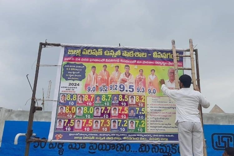 ముద్ర/వీపనగండ్ల:- ప్రైవేట్ పాఠశాలలకు దీటుగా ప్రభుత్వ పాఠశాలల్లోనే విద్యార్థులకు నాణ్యమైన విద్య అందుతుందని ప్రభుత్వ ఉపాధ్యాయులు ప్రైవేట్ పాఠశాలలకు దీటుగా గ్రామాలలో ప్రచారం చేస్తున్నారు. ప్రభుత్వ పాఠశాలల పై విద్యార్థుల తల్లిదండ్రులు చిన్నచూపు చూడటం సరికాదని అర్హత గల ఉపాధ్యాయులతో ప్రభుత్వ పాఠశాలల్లో విద్యార్థులకు నాణ్యమైన విద్య అందించారని, ఇటీవల విడుదలైన పదవ తరగతి పరీక్ష ఫలితాల్లో నివేదన ఫ్లెక్సీల ద్వారా ఉపాధ్యాయులు ప్రచారం నిర్వహించారు.